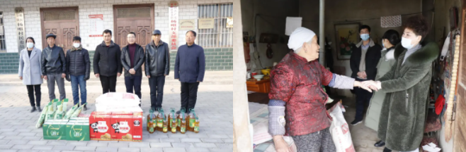 庆阳圣元运营总监张涛、二期项目总指挥叶红侠分别走访慰问肖金镇生活困难人员及贫困户,为他们送去米、油、牛奶等慰问品和新春佳节的问候与祝福。