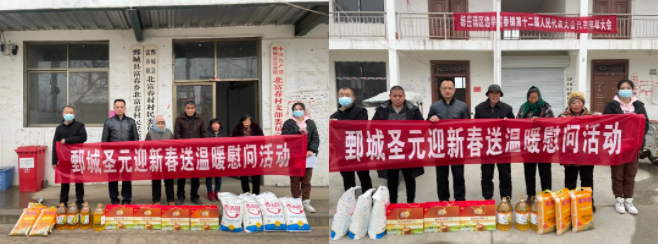 鄄城圣元运营总监吴小平带领慰问小组,在北富春村村委干部的陪同下,为困难家庭和孤寡老人并送上了油、大米、面粉等新春慰问品和新春佳节的美好祝福。