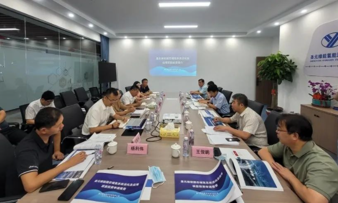 林东廓总经理向各位到访领导详细介绍了圣元环保的企业概况和发展规划,及圣元绿能的氢能项目、储氢技术、固态储氢应用场景和投资项目等情况。