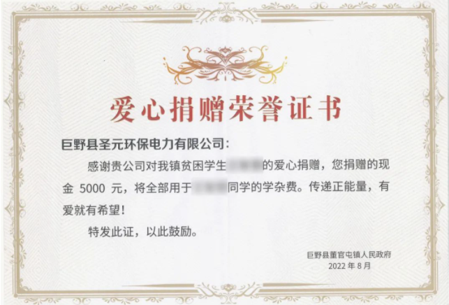 (二)巨野圣元参与爱心捐赠贫困学生活动