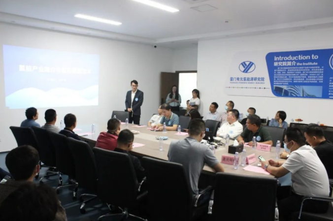 交流会由厦门市发明协会黄长晴秘书长主持。圣元环保董事长朱煜煊发表致辞,他以国家政策及区域优势为背景,详细介绍圣元环保固态储氢系统活化及应用项目概况及进展。厦门有元氢能源研究院副院长马兆伟向与会人士作《氢能产业链简介与固态储氢技术》专题报告,并与与会人士就自身行业特点及对氢能源未来发展的见解等进行深入探讨。