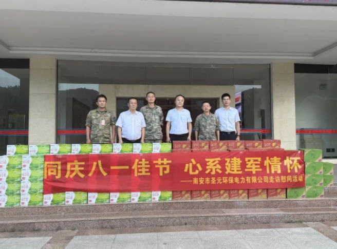 在“八一”建军节来临之际,为弘扬拥军优属、拥政爱民的优良传统,圣元环保副总经理汪云保、南安圣元运营总监何加焰一行前往共建部队驻南安某部开展慰问活动,向坚守岗位、保家卫国的官兵们送上节日的问候和慰问品。