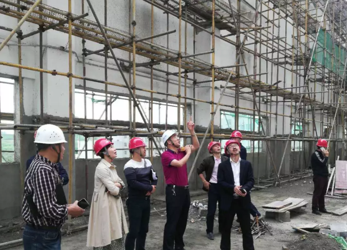阎总工实地查看中控楼、汽机房、卸料大厅、35KV线路及外部供水管线等区域,还亲自到锅炉上部工作面,察看工程进展。